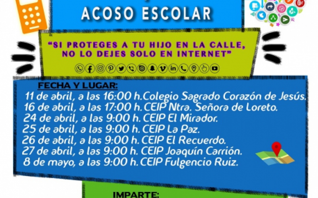 Mothers and fathers may know the dangers of an irresponsible use of social networks, listen to advice on its correct use and raise any concern about it in any of the six talks that will offer the local policeman, José Manuel Navarro, in different centers of the municipality from April 11 to May 8.