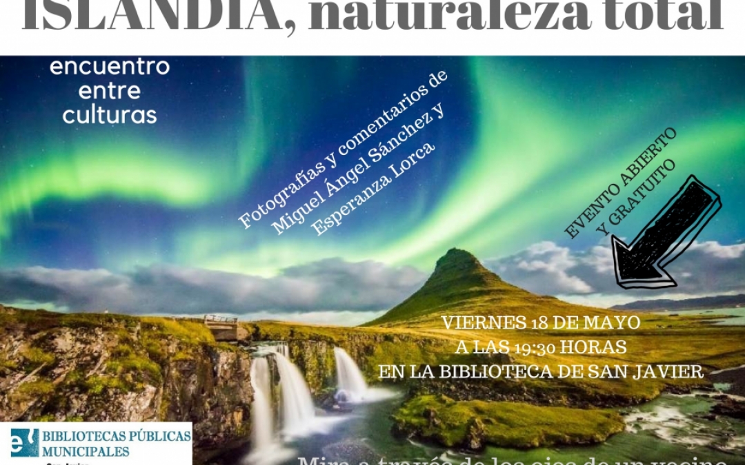 Friday, May 18 at 7:30 p.m. at the San Javier Library. Neighbors Miguel Ángel Sánchez and Esperanza Lorcate show their trip to Iceland