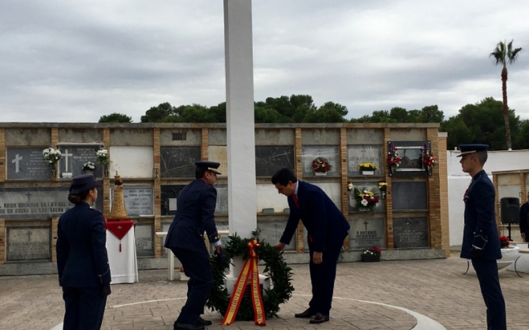 El alcalde de San Javier, José Miguel Luengo y varios miembros de la Corporación municipal asistieron hoy, en el cementerio de San Javier, al acto con el que la Academia General del Aire recuerda a sus militares fallecidos coincidiendo con el Día de los Caídos por la Patria que celebran las Fuerzas Armadas Españoles el dos de noviembre.
