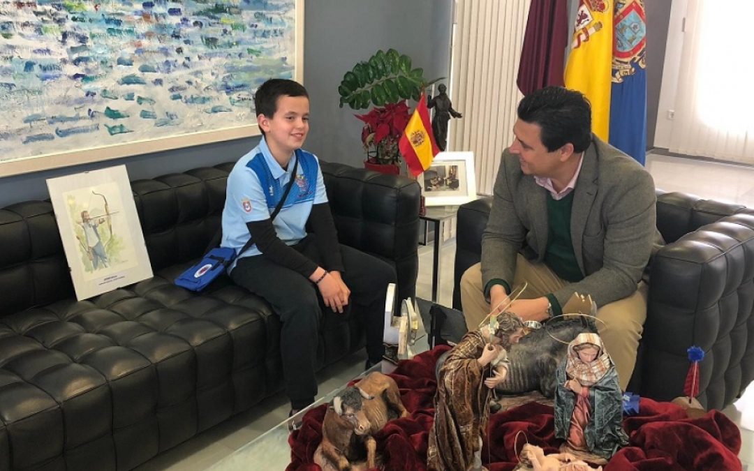 El alcalde José Miguel Luengo y la concejala de Deportes Estíbaliz Masegosa recibieron en el Ayuntamiento al niño Álvaro de los Santos Sánchez, vecino de Santiago de la Ribera, que con solo 11 años se ha proclamado subcampeón de España de Tiro de Campo para menores de 14 años en el campeonato celebrado en Morón de la Frontera, Sevilla, el pasado verano.