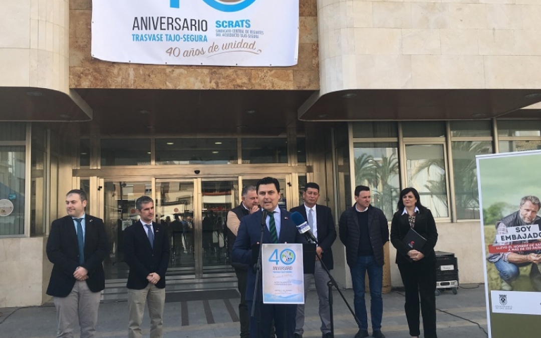 The Plaza de España de San Javier hosted today an act of support for the Tajo-Segura Transfer coinciding with its 40th anniversary to "claim what has been an equality and structuring model of Spain "indicated the Mayor José Miguel Luengo who highlighted the exemplary nature of the sector of local irrigators that has generated 173 companies and creates 3000 jobs in the municipality of San Javier.