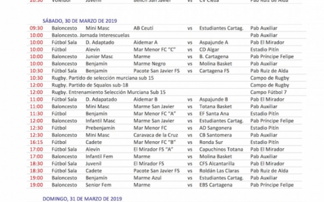 Weekend sporting calendar 29-30-31 March 2019