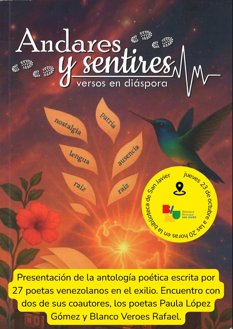 JUEVES 23 DE OCTUBRE A LAS 20:00 HORAS EN LA BIBLIOTECA DE SAN JAVIER. Presentación del poemario "Andares y sentires: versos en la diáspora"