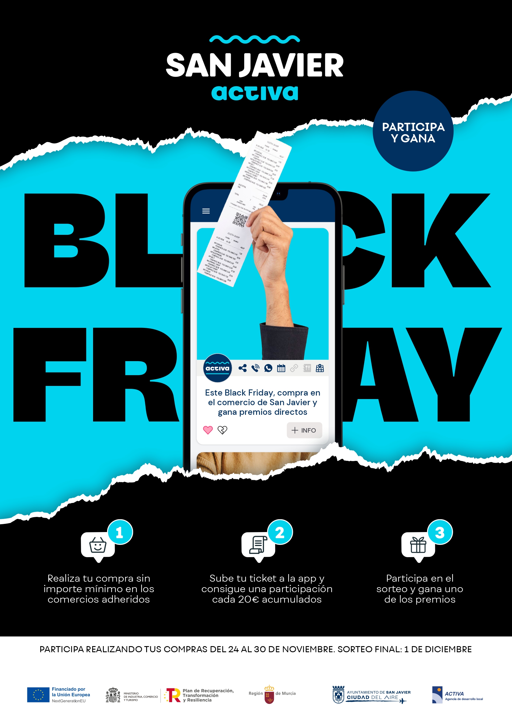 Los ciudadanos podrán ganar premios directos aportados por los comercios participantes, del 24 al 30 de noviembre, subiendo sus tickets a la aplicación San Javier Activa