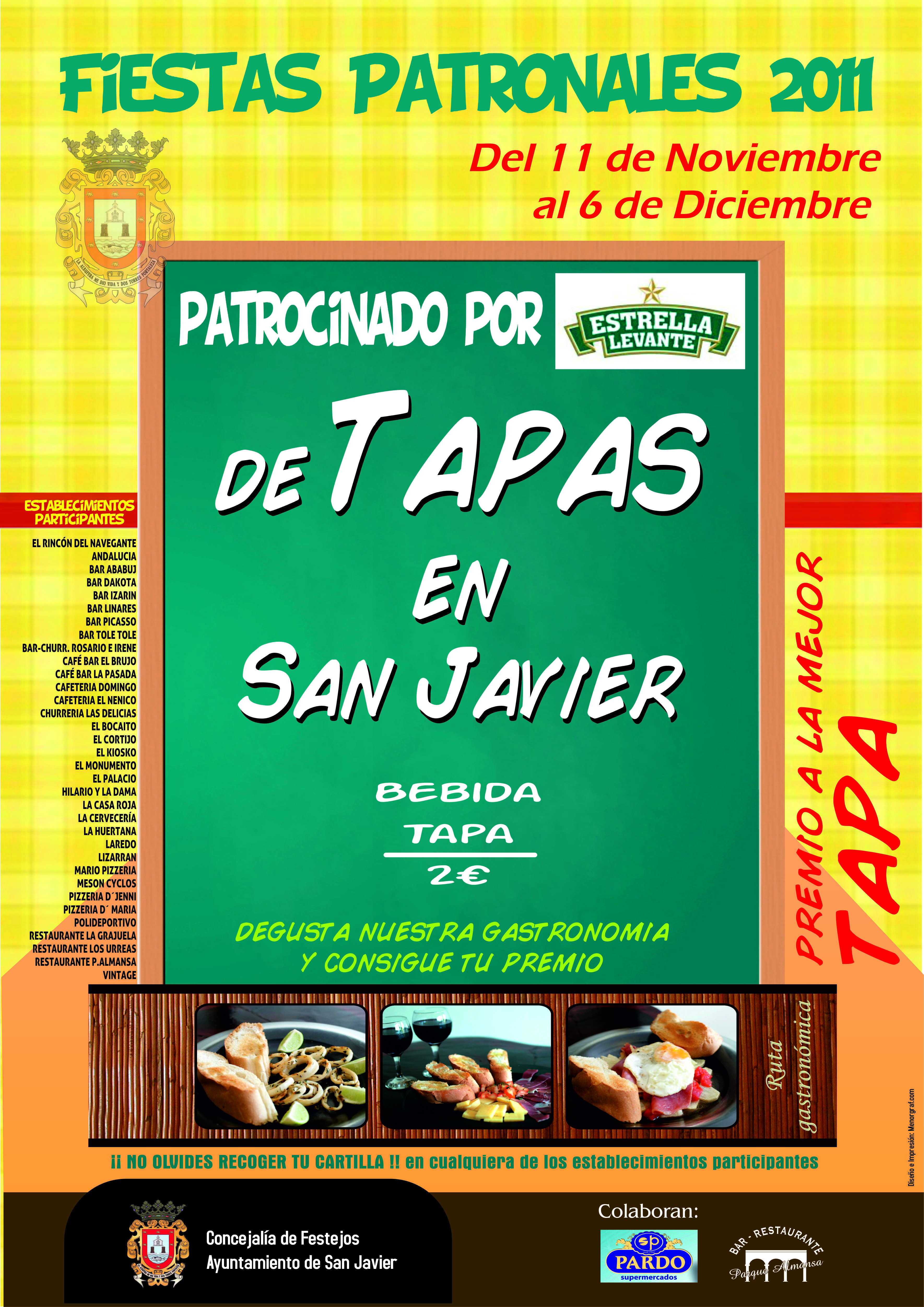 La ruta de la tapa vuelve un año más a San Javier con motivo de sus fiestas patronales. Este año “De Tapas en San Javier” cuenta con 35 bares y