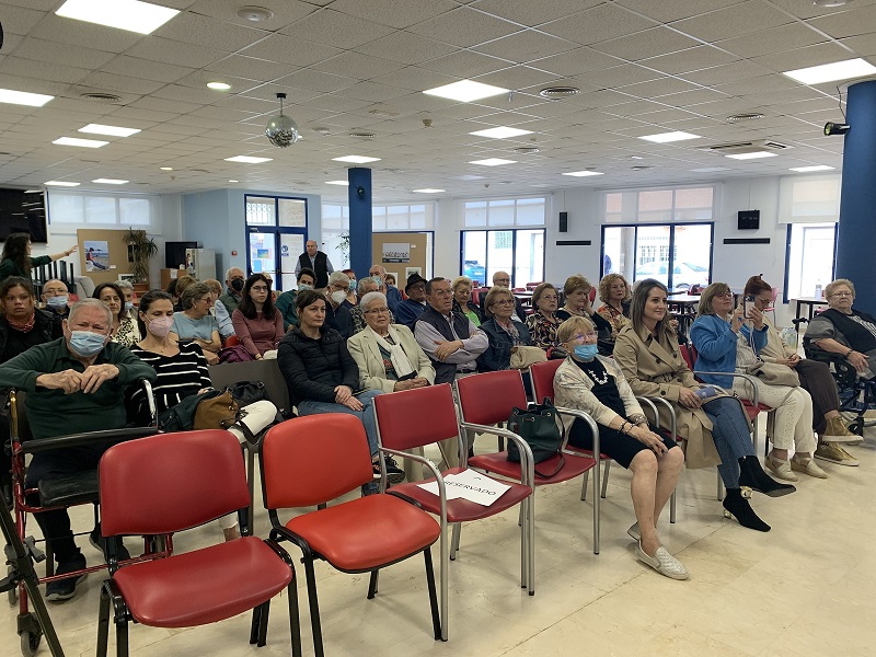 La concejala Estíbaliz Masegosa elogia la labor de Genoveva Ortíz al frente de la Asociación durante los últimos años, en un acto celebrado con motivo del Día Internacional del Parkinson en el Centro Municipal de Mayores de La Ribera