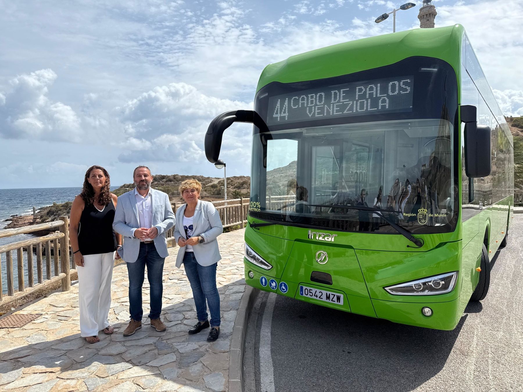 El nuevo vehículo eléctrico de Movibus hará el trayecto de la línea 44 que conecta Cabo de Palos con Veneziola