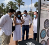 El consejero y el alcalde de San Javier, José Miguel Luengo visitaron la exposición sobre el Mar Menor "La pandilla salada" que estará en Santiago de la Ribera hasta el 25 de agosto