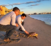 Devolución al mar de una tortuga boba en La Manga