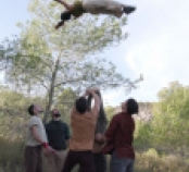 Funambulismo a siete metros de altura en “Nada”, un espectáculo de calla para toda la familia, de la compañía oscense, Nostraxladamus