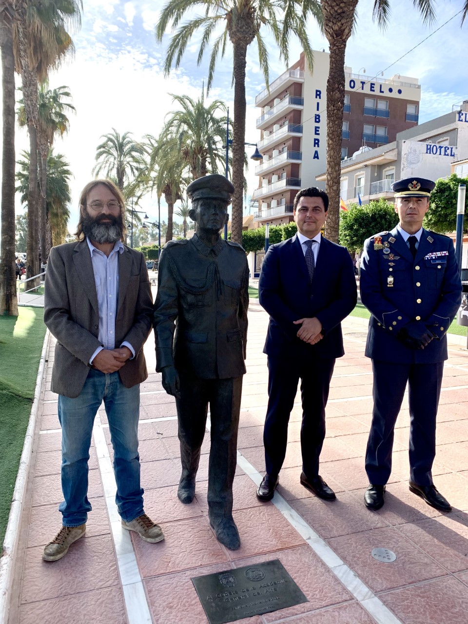 San Javier inaugura una escultura de un cadete en homenaje a los alumnos y futuros oficiales que se forman en la AGA