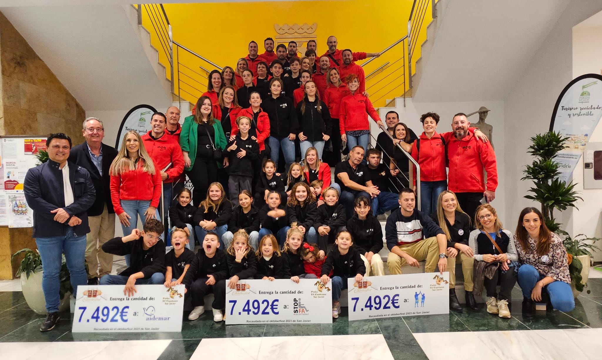 La peña El Cantazo entrega 22.476 euros de la recaudación del Oktoberfest San Javier 2023 a tres entidades benéficias