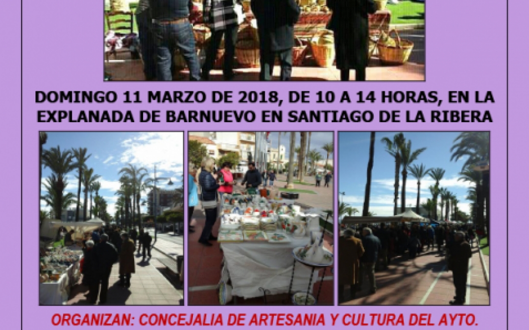 10:00 Mercado Artesano del Mar Menor con el Gremio REgional de Artesanías Varias. Hasta las 14h. en explanada Barnuevo, Santiago de la Ribera