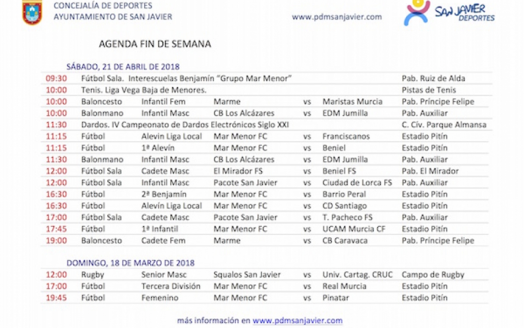 Agenda deportiva finde 21-22 abril 2018
