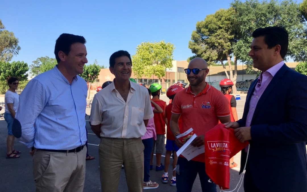 La Vuelta Junior, que se celebra en 10 municipios de España relacionados con la Vuelta Ciclista 2018, ha recorrido en las últimas semanas todos los colegios del municipio, incluido el CEIP “Mediterráneo” de La Manga y Aidemar llegando a más de 2000 alumnos de Primaria de 8 a 12 años, que de la mano del seleccionador regional de ciclismo Juan Miguel Pérez han aprendido historia y curiosidades sobre este deporte, así como a circular con más seguridad y destreza, que han podido demostrar en la gymkana final montados en una bicicleta.