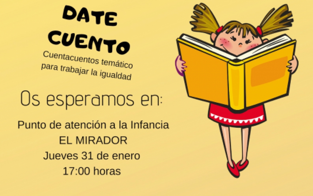 Jueves 31 de enero a las 18:00 horas en el Punto de Atención a la Infancia de El Mirador. Cuentacuentos sobre la igualdad de género. Organizan Escuela Municipal de Familia y Biblioteca.