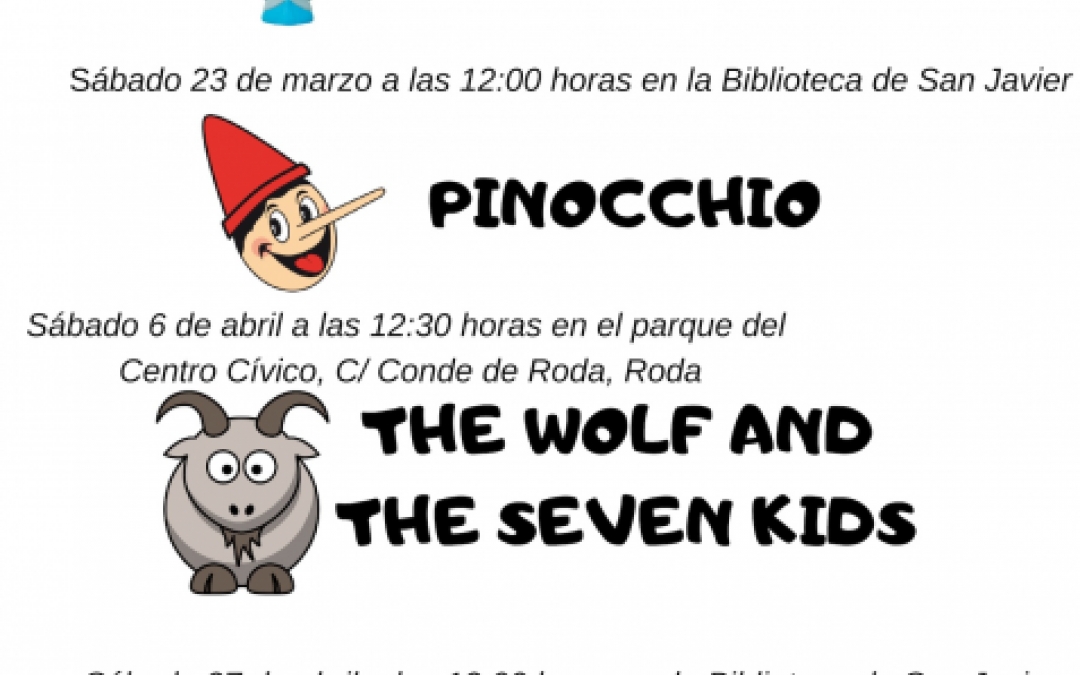 El sábado 9 de marzo a las 12:30 en el Parque San Rubén, (C/ San Rubén), de Santiago de la Ribera, cuentacuentos bilingüe recomendado para familias con niños de hasta 10 años.