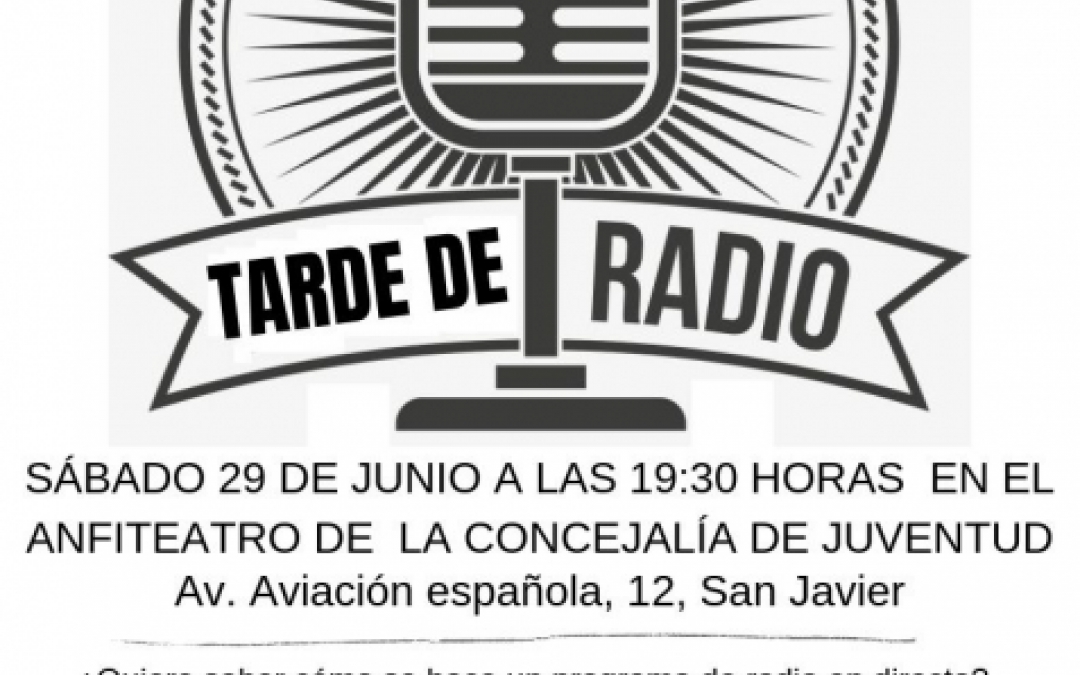El sábado 29 de junio a las 19:30 horas en la Concejalía de Juventud de San Javier, el youtuber Kevin Mancojo y la periodista Marisol Álvarez te ofrecen una TARDE DE RADIO en directo. Entrevistas, música y un montón de sorpresas.