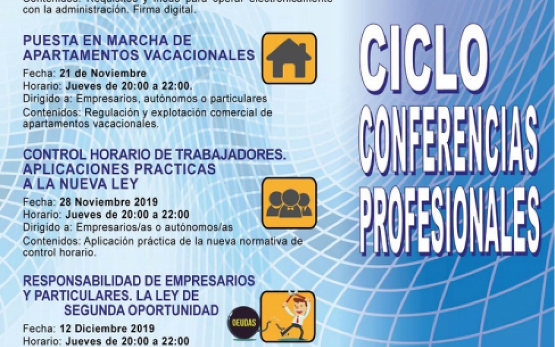 Las conferencias, que serán de libre acceso y sin inscripción previa, tienen como objetivo servir de ayuda a empresarios y emprendedores sobre cuestiones relacionadas con nuevas normativas aplicables al mundo empresarial.