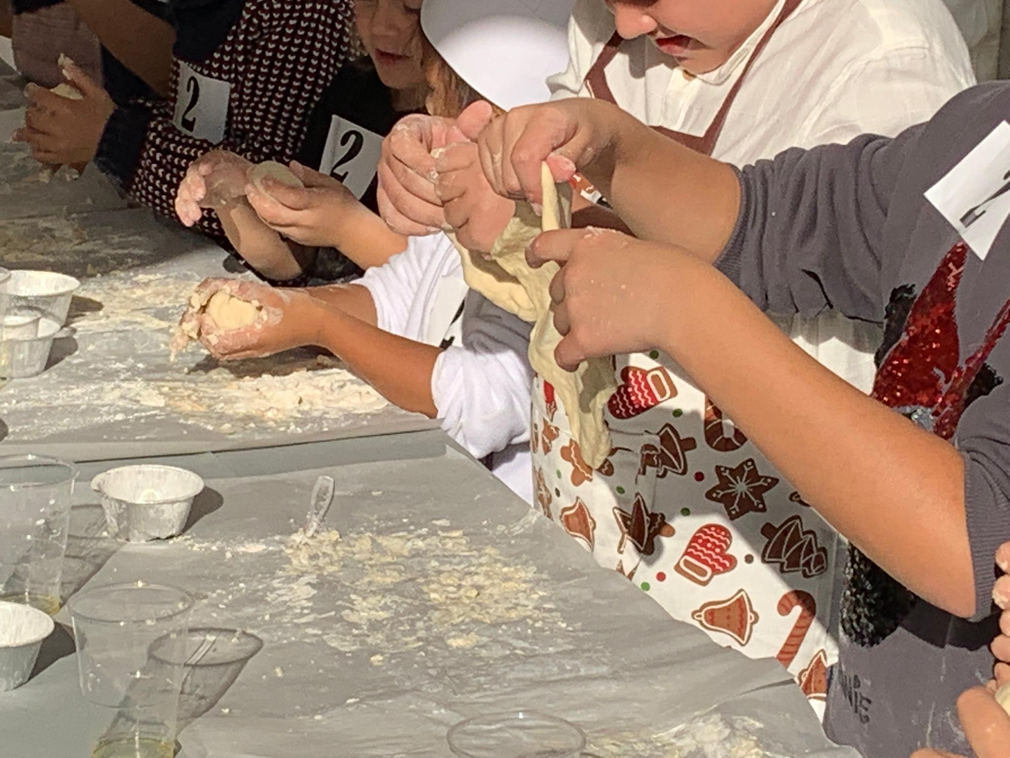 Cerca de 400 niños de entre 6 y 11 años de edad aprendieron algo más de cocina en “Cocineros Junior” , un evento culinario que este año ofrecía el programa de fiesta patronales destinado para los más pequeños. En diferentes grupos, que se distinguían por colores, los niños escogían el taller de minipizzas, galletas, trufas y gominolas naturales en los que siguiendo las instrucciones de cocineros y estudiantes de cocina, pudieron aprender, experimentar y cocinar por sí mismos en las carpas que se colocaron en la plaza de España a la vista del público.