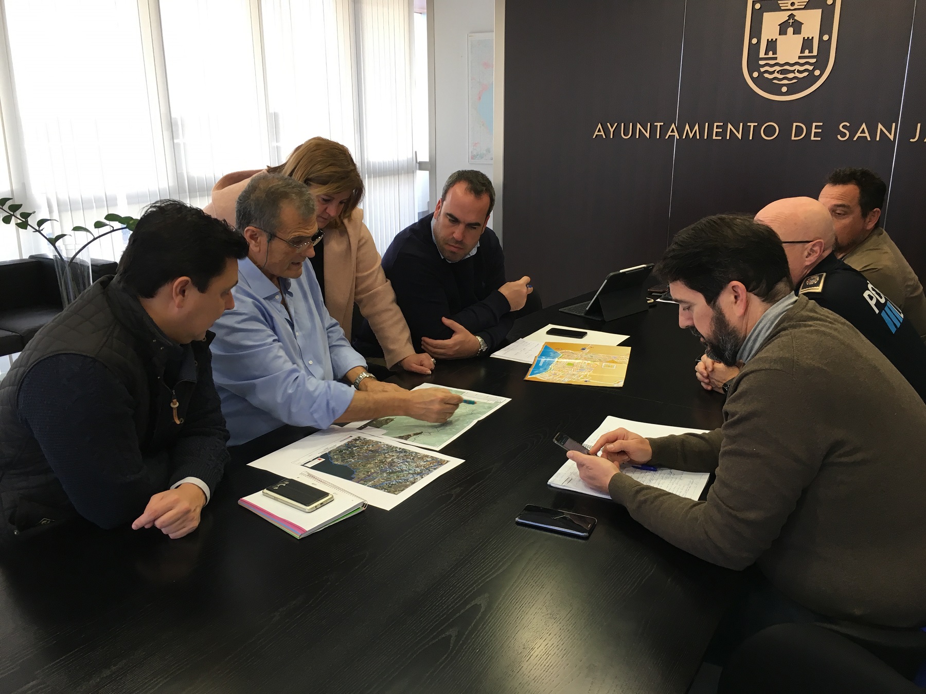 El alcalde José Miguel Luengo ha presidido esta mañana la reunión de coordinación de emergencias por el temporal de viento y lluvia que afecta al municipio sin ocasionar, hasta el momento, grandes daños, según han expuesto los servicios técnicos.