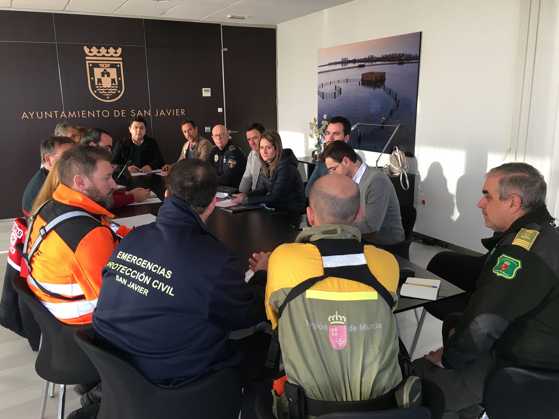 El alcalde subrayó la importancia de los colectores Norte y Sur de San Javier , cuyas obras ya cuentan con el informe de impacto medioambiental favorable, con los que se gestionarán las aguas procedentes de la zona norte como la rambla de Macodesa, barrio Los Ríos, avenida Mar Menor, barrio Pescadores, y de la zona Sur como el entorno del Tanatorio y avenida Neptuno, confluyendo ambos en cabo Roche, desde donde se conducirá a un embalse en la zona de la antigua depuradora. Además se han articulado otras medidas complementarias como la utilización de la Vereda del Vinco, cuyo deslinde ya ha comenzado, como un canal de 20 metros a cielo abierto, que aliviará la zona sur del municipio como la avenida Ramón y Cajal. Asimismo Ayuntamiento y AGA estudian conjuntamente otras soluciones de evacuación de aguas pluviales como la habilitación de un tanque ambiental inundable en el interior del recinto militar, que contribuiría a proteger el entramado urbano.