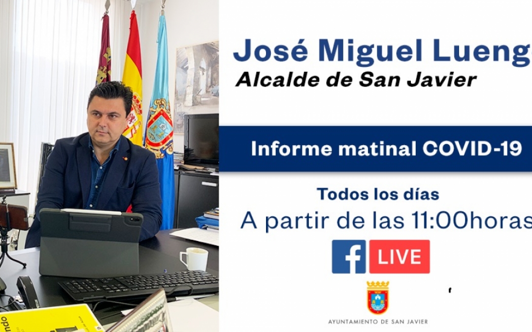 En relación a la evolución de la situación generada por el COVID-19, el alcalde de San Javier advirtió que “en los próximos días puede empeorar la situación” y pidió seguir extremando las medidas sanitarias y de aislamiento social ante un probable incremento de los casos confirmados en la Región de Murcia. En este sentido informó que en la actualidad un total de 45 personas están confinadas en sus casas , en el municipio de San Javier, con seguimiento sanitario por posible positivo en Coronavirus. Luengo hizo un llamamiento a la responsabilidad de los vecinos para que no salgan de casa o extremen las medidas de seguridad en el caso de que por trabajo tengan que salir de su vivienda.
