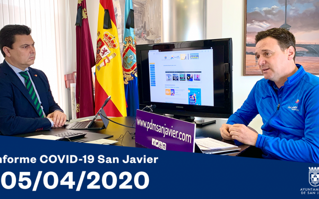 En el informe de hoy intervino también el concejal de Deportes , Sergio Martínez que agradeció la labor que están desarrollando los monitores del Polideportivo Municipal de San Javier y animó a la población a seguir los más de 140 videos didácticos que ya han colgado a disposición del público en la web www.pdmsanjavier.com para hacer deporte en casa. Se trata de sesiones, grabadas o en directo por los monitores habituales desde sus casas, que abarcan todo tipo de actividades y deportes, incluyendo la actividad física para personas mayores con su monitor habitual para que puedan seguir realizando sus ejercicios habituales también en este tiempo de encierro.