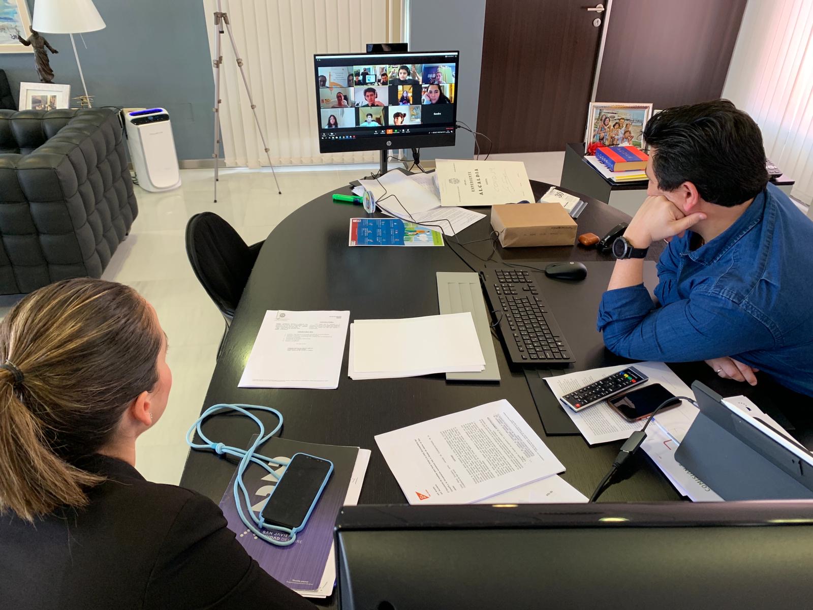 El alcalde de San Javier, José Miguel Luengo y la concejala de Derechos Sociales, Estíbaliz Masegosa han celebrado esta mañana una videollamada con representantes del Consejo Local de la Infancia y Adolescencia de San Javier para los que el confinamiento les ha servido, entre otras cosas “para valorar lo que teníamos antes”.