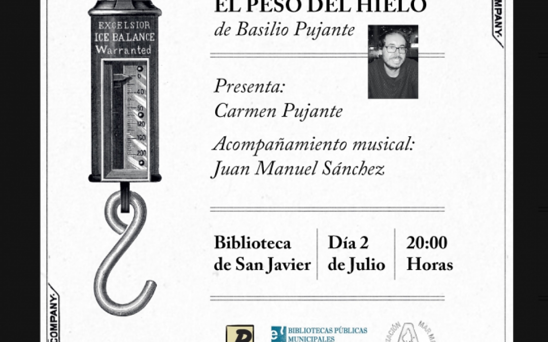 Basilio Pujante presenta en el jardín de la biblioteca de San Javier su libro de relatos El peso del hielo, acompañado del músico Juan Manuel Sánchez. Será un evento dinámico y divertido, además de literario y musical. Se ofrecerá con todas las medidas de seguridad.