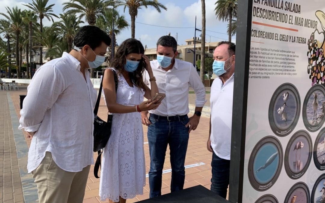 El alcalde José Miguel Luengo conoció junto al consejero Antonio Luengo, la directora general del Mar Menor, Miriam Albaladejo y el concejal de Sanidad, Isidoro Miñano la exposición interactiva “La pandilla salada” que se podrá visitar en la explanada Barnuevo de Santiago de la Ribera hasta el 25 de agosto durante las 24 horas del día. Para salvar las medidas de seguridad contra la COVID19 la muestra cuenta con un sistema de audio guías que se descargan en el teléfono móvil a través de un dispositivo QR . Las voces de los distintos personajes que componen la pandilla y que representan las especies de flora y fauna más característicos del Mar Menor exponen de manera amena los secretos de la laguna ofreciendo información sobre el Mar Menor así como de su entorno , flora y fauna. Para el consejero Antonio Luengo con estas acciones también se está protegiendo el Mar Menor, “porque la mejor manera de protegerlo es conocerlo por lo que tenemos que seguir apostanto por la sensibilización, la formación y la información”. La exposición que ya ha pasado por San Pedro del Pinatar y Los Alcázares pemanecerá en Santiago de la Ribera hasta el 25 de agosto cuando viajará a Cartagena hasta el 1 de septiembre.