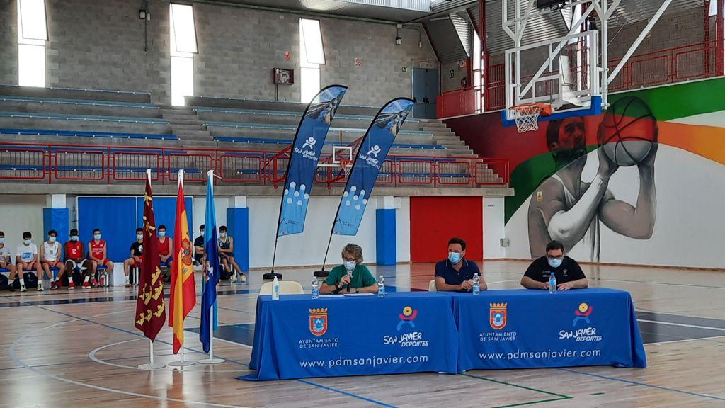 El concejal de Deporte, Sergio Martínez, la directora de UNIMAR, María José Portillo y Juan Carlos García, uno de los directores del Curso de Alto Rendimiento en Baloncesto han inaugurado esta mañana la 10ª edición del curso que la Universidad Internacional de Mar celebra en San Javier desde hoy viernes hasta el próximo domingo 4 de julio. El curso, con más de 100 inscritos, en su mayoría entrenadores,jugadores e interesados en el baloncesto, se celebra en la modalidad mixta con 40 alumnos presenciales y el resto online, para poder garantizar las medidas sanitarias con motivo de la pandemia.