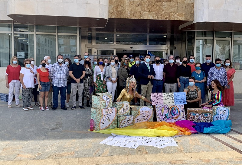 El Ayuntamiento de San Javier y AFEMAR Salud Mental y TEA de la comarca del Mar Menor han adelantado hoy la celebración del Día Mundial de la Salud Mental, que se conmemora el 10 de octubre, con un acto en la plaza de España, de San Javier, donde se ha reivindicado “el derecho a la salud mental como un atributo universal y necesario”. Acompañado por el alcalde de San Javier, José Miguel Luengo y por el presidente de AFEMAR, José Ramón Sáez, el usuario y vocal de la asociación, Rubén de la Fuente, fue el encargado de leer el manifiesto en el que se llama la atención sobre las desigualdades sociales frente a la salud mental.