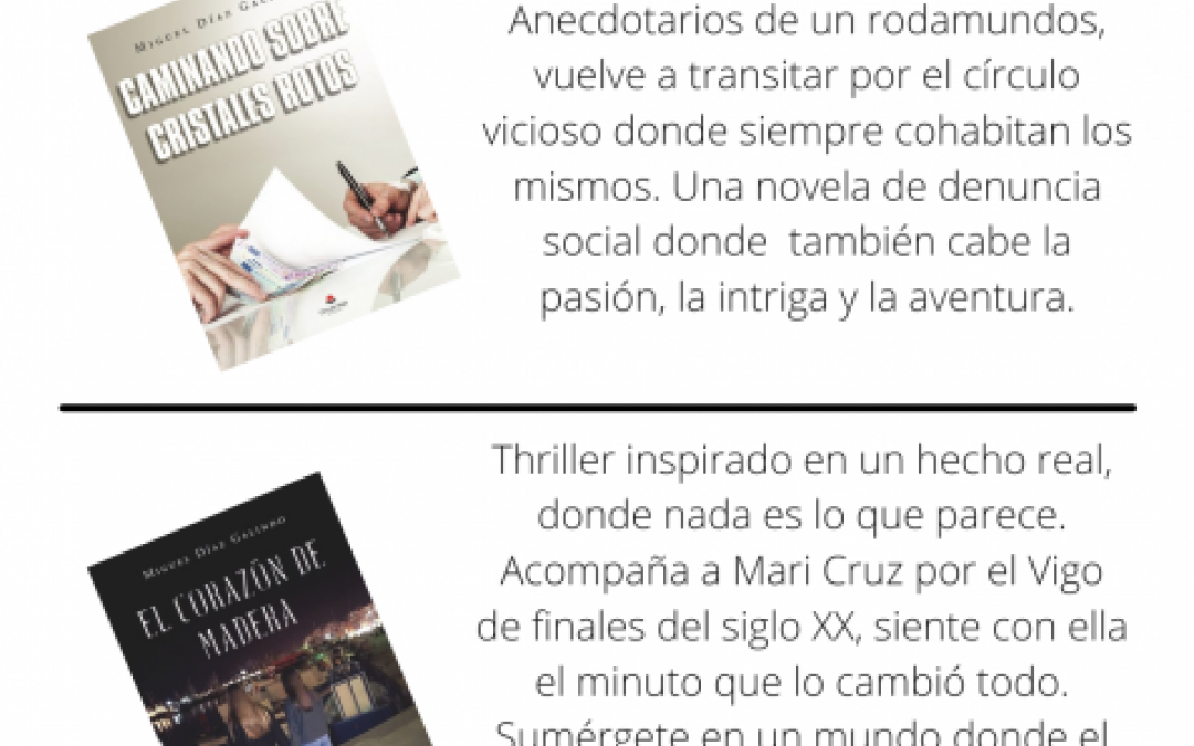 El vivísimo autor Miguel Díaz Galindo nos presenta sus dos últimas novelas, donde como siempre, mezcla sus vivencias con la ficción, creando unas novelas donde nada es lo que parece o sí. Mirarle a los ojos mientras describe en sus presentaciones las historias de sus novelas, es una buena cosa para saber si es verdad o adulcorado lo que cuenta. Toda una intriga.