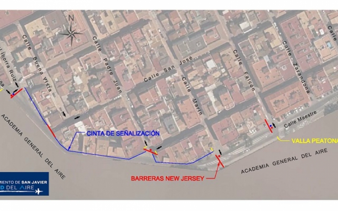 Un tramo de la calle Maestre y otro de la calle Coronel López Peña, que da continuidad a la anterior, en Santiago de la Ribera, estará cortado al tráfico durante dos meses a partir del próximo lunes 13 de diciembre, con motivo de la segunda fase de las obras de retranqueo del muro de la AGA y ampliación de la vía, actualmente en curso.