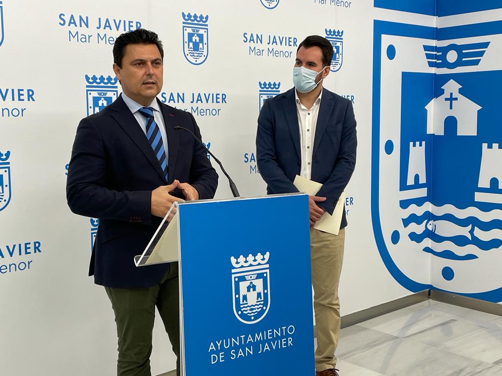 El alcalde de San Javier, José Miguel Luengo presentaba hoy, una hora antes del pleno y junto al concejal de Hacienda, Héctor Verdú, el presupuesto Municipal 2022 de San Javier con un total de 51.184.809€, lo que significa una reducción de 340.000€ menos que el presupuesto anterior.