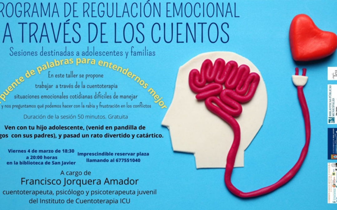 La Comisión Salud Mental y Cultura de la comarca del Mar Menor reanuda su programa de acción cultural con una sesión de Cuentoterapia dirigida al control de las emociones en adolescentes, que tendrá lugar el viernes 4 de marzo a las 18:30h en la Biblioteca de San Javier. El psicólogo y psicoterapeuta juvenil, especializado en cuentoterapia, Francisco Jorquera impartirá la sesión, que abordará la regulación de emociones como la rabia y la frustración durante la adolescencia. La actividad gratuita y con una duración aproximada de 50 minutos está especialmente indicada para adolescentes acompañados por progenitores o tutores, aunque también se puede asistir en grupo, con alguno de sus padres o tutores. Imprescindible inscripción previa en el 677551040.