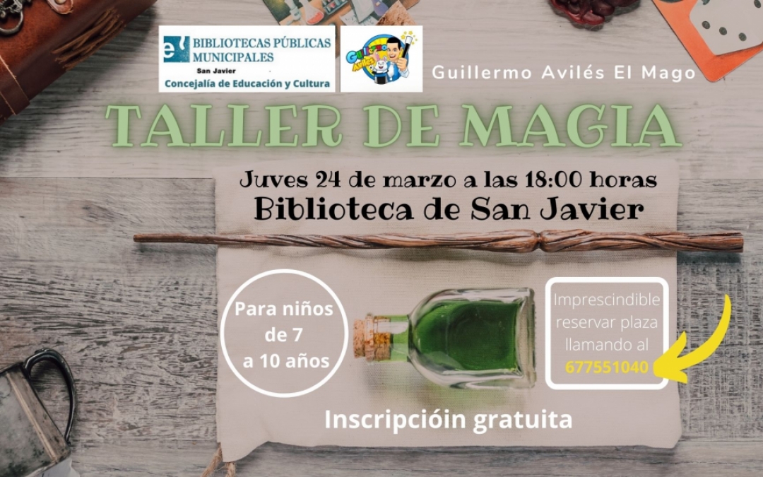 Corre, que se acaban las plazas. En la biblioteca de San Javier, para niños de 7 a 10 años, taller de magia, sí, del ínclito Guillermo Avilés el Mago, gratis, claro, pero eso sí, imprescindible inscripción previa llamando al 677551040. ¡Vamos!