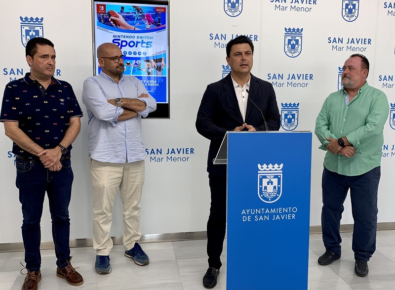 El alcalde de San Javier, José Miguel Luengo junto a Esteban Rodríguez, responsable del tour, el alcalde pedáneo de Santiago de la Ribera y el concejal de Fiestas, Isidoro Miñano, presentaron esta mañana en el Ayuntamiento de San Javier, el evento que invita a los participantes a practicar seis deportes diferentes a base de movimientos reales del cuerpo que los mandos de Nintendo Switch llevan directamente a la pantalla.