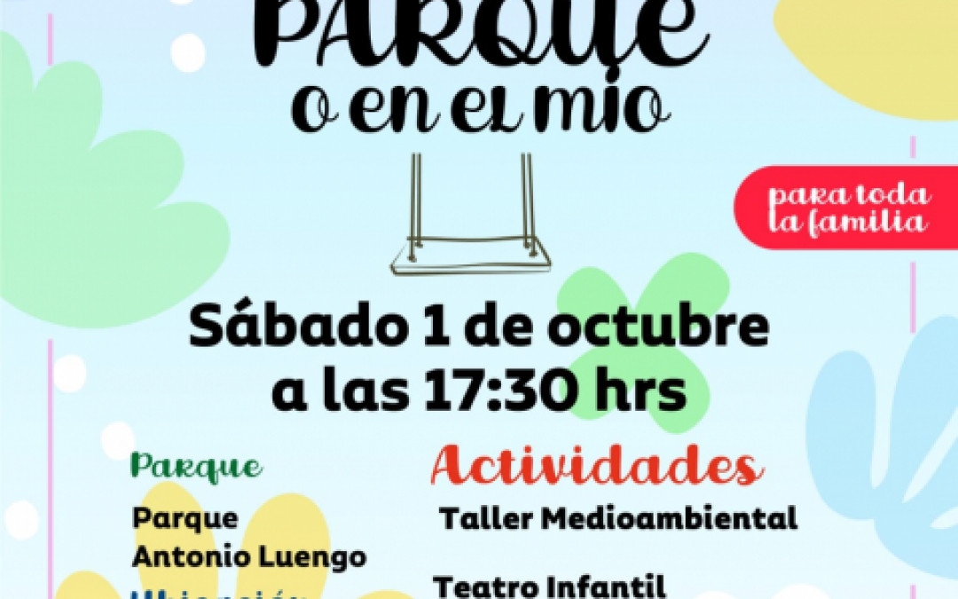 En tu parque o en mío. Uno de octubre a las 17:30 horas en el Parque Antonio Luengo, (El Mirador). Actividades infantiles.