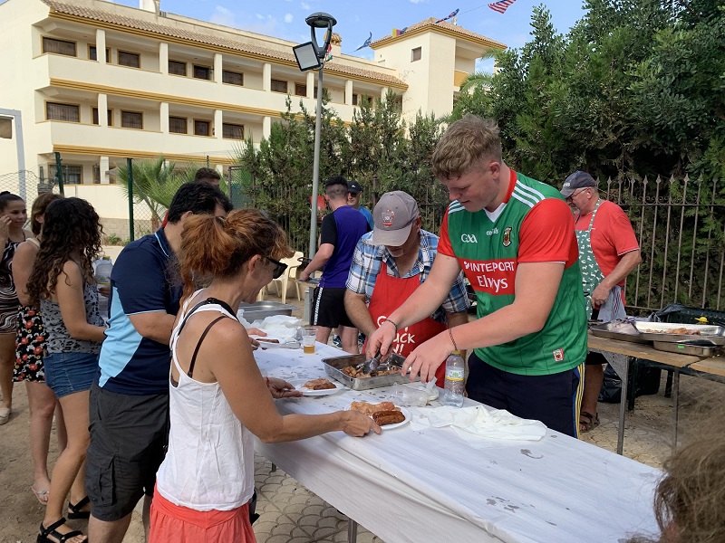 Phoebe, una joven inglesa que reside en Roda desde hace siete años y que habla un perfecto españolcon acento murciano, reconoce que el Día Inglés supone “mucho trabajo pero lo pasamos muy bien”. Junto al numeroso equipo que se encarga de cocinar y componer, al otro lado del mostrador, el vistoso plato del “English breakfast” , Phoebe señala como “en España las fiestas se viven muchísimo, es algo típico y tradicional y se trata de hacer partícipe de ello a la colonia inglesa y extranjera en general”. El Día Inglés continúa hasta la noche con una típica barbacoa inglesa, que se servirá por 2,5 euros en la pinada en una de las noches más multitudinarias de las fiestas.