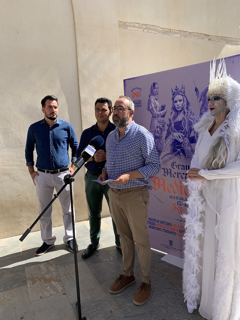 El centro de San Javier, acogerá el “Gran Mercado Medieval Villa de San Javier” que se celebrará del 15 al 18 de septiembre con más de 50 puestos y un variado programa de actividades de animación durante los cuatro días. El alcalde, José Miguel Luengo y los concejales de Cultura, David Martínez y de Comercio, Héctor Verdú, presentaron esta mañana el Mercado, que organizan ambas concejalías y que pretende dinamizar el centro de la localidad con un guiño a la historia local.