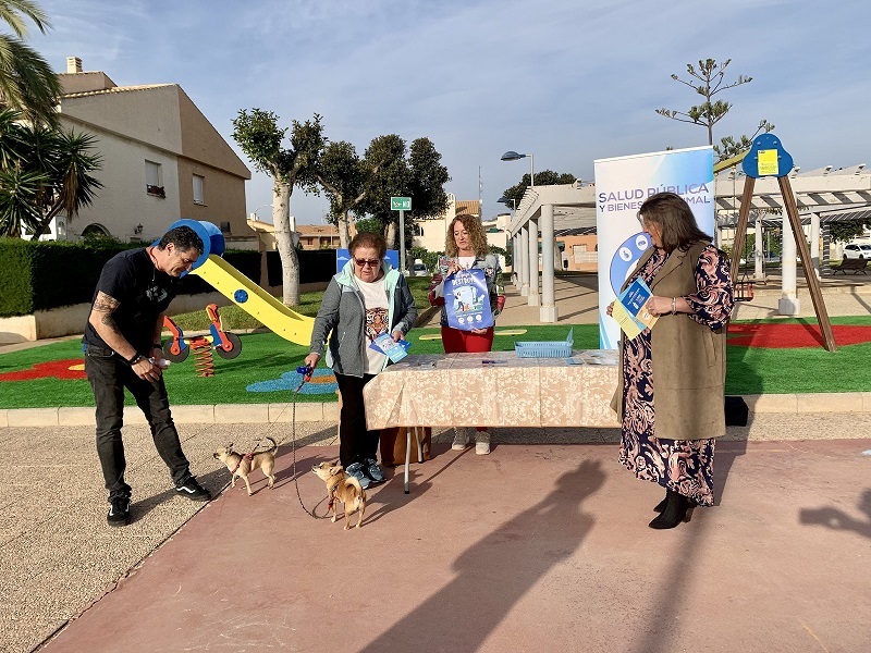 La concejala de Servicios Comunitarios y Parques y Jardines, María Dolores Ruiz subrayó hoy la importancia de la concienciación que deben tener los propietarios de mascotas tanto sobre sus obligaciones sanitarias y cuidados como sobre la normativa que deben cumplir cuando salen a pasear con ellos. La edil visitó una de las acciones que de manera periódica realiza la concejalía de Sanidad para difundir la normativa sobre tenencia de animales y campañas de concienciación como “El pipí destruye”, que se ha llevado a cabo hoy en el parque de La Fuensanta, en Santiago de la Ribera.