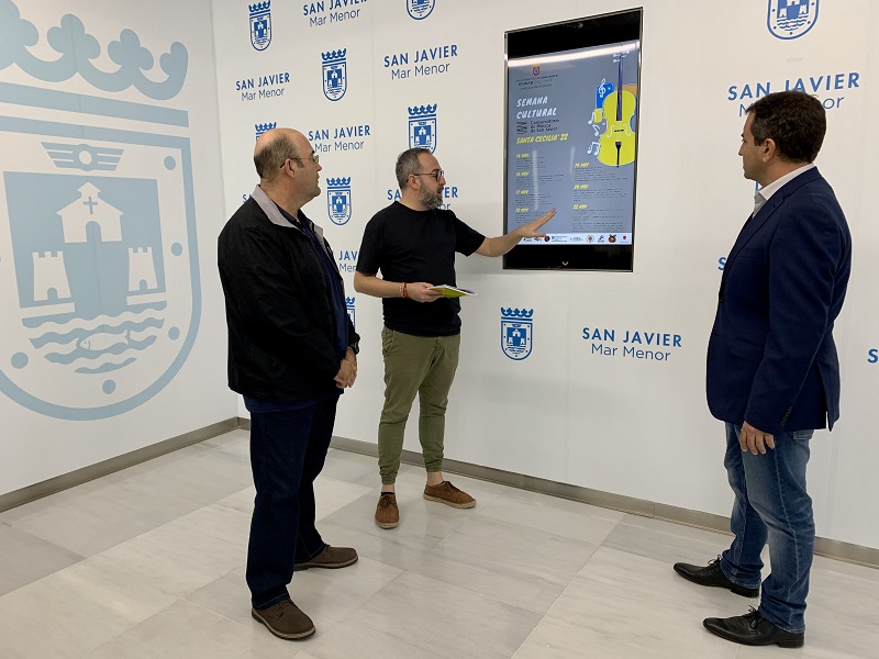 El concejal de Cultura y Educación, David Martínez, el director del Conservatorio, Francisco Javier Martínez y el director de la Banda Sinfónica de San Javier, Gregorio González , presentaron hoy un amplio programa de actividades que se han organizado con motivo de la festividad de Santa Cecilia, que se celebra el próximo 22 de noviembre.