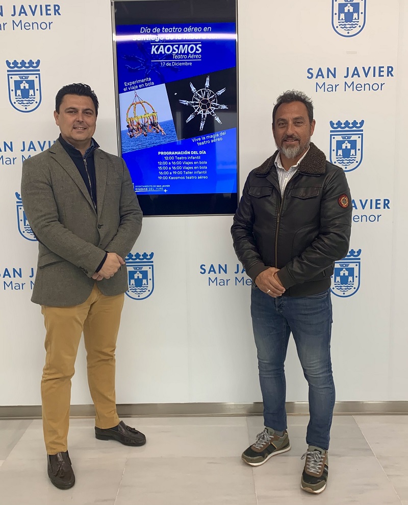 El teatro aéreo vuelve a los cielos de San Javier, en este caso a los de Santiago de la Ribera, donde el sábado 17 de diciembre, en una jornada pre navideña, se celebrará un día lleno de actividades en el que habrá teatro infantil, “viajes en bola” de hasta 40 metros de altura, talleres de temática aeronáutica y un gran espectáculo aéreo con el Grupo Puja!. La compañía con más 20 años de experiencia internacional en espectáculos aéreos de gran formato, presentará su espectáculo “Kaosmos”, que da título a toda la jornada organizada al amparo del proyecto “San Javier, ciudad del aire”.