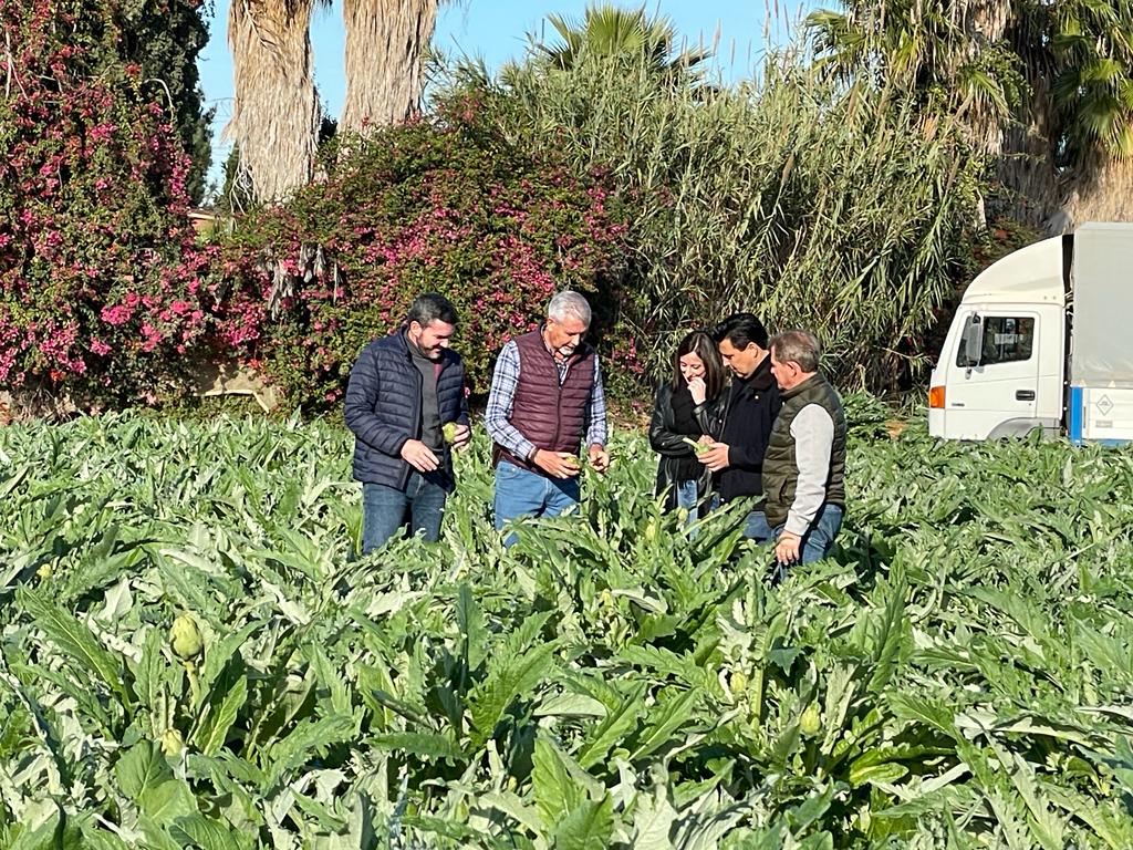 El consejero de Agua, Agricultura, Pesca, Medioambiente y Emergencias, Antonio Luengo, el alcalde de San Javier, José Miguel Luengo y el presidente de la Asociación Alcachofa de España, Antonio Galindo visitaban hoy una finca de alcachofas ubicada en La Tejera, en la pedanía de La Grajuela, en San Javier.