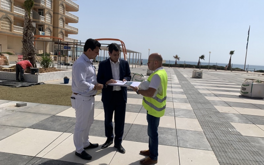 El consejero en funciones de Fomento e Infraestructuras, José Ramón Díez de Revenga, visitó esta semana las obras de remodelación junto al alcalde de San Javier, José Miguel Luengo, y destacó que, en estas actuaciones “predomina la peatonalización y el disfrute de los enclaves más populares de La Manga, al mismo tiempo, que integramos el entorno natural dentro de la escena urbana”.