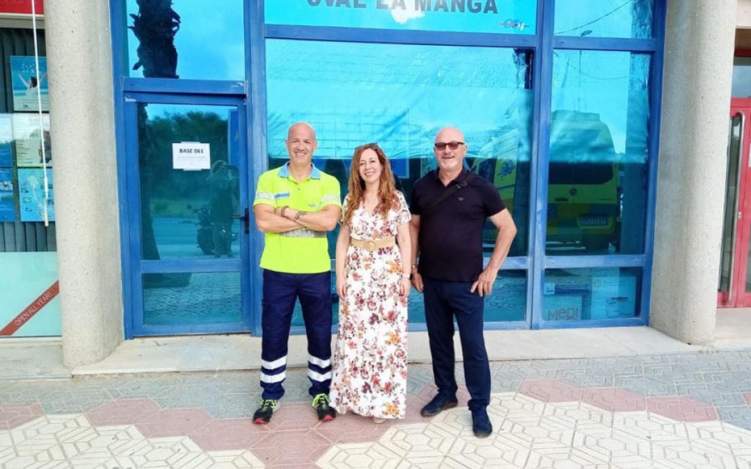 El servicio de ambulancia también se refuerza, con un servicio ubicado en Urbanización Puerto y Playa, en el km 12 de La Manga . María José Bernal explicó que el Ayuntamiento, en coordinación con la Gerencia del 061 del Servicio Murciano de Salud pone en marcha este servicio, asumiendo el coste del alquiler de un local, que funciona como base para el descanso del personal de las ambulancias con el fin de gestionar el servicio de emergencias las 24 horas. Este servicio dispone de una ambulancia tipo (SVAE) soporte vital avanzado de enfermería que agiliza las intervenciones sanitarias en la zona norte de La Manga durante las 24 horas. El servicio de ambulancia comenzó el 1 de julio y continuará abierto hasta el 31 de agosto.