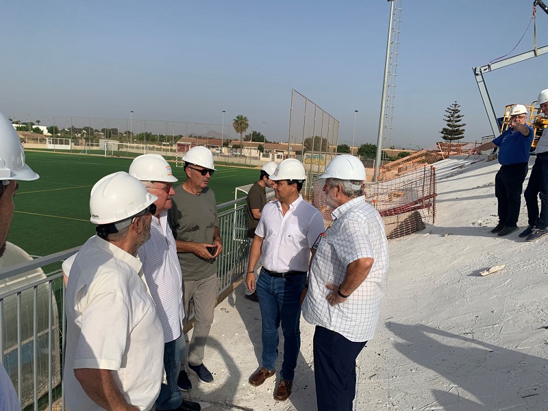 El graderío y vestuarios del campo de fútbol de Santiago de la Ribera se podrá utilizar a partir del próximo mes de septiembre, anunció hoy el alcalde de San Javier, José Miguel Luengo durante una visita a las obras acompañado por el concejal de Deportes, Sergio Martínez. “Las obras avanzan a muy buen ritmo por lo que estarán finalizadas en este verano de manera que el próximo curso tanto los estudiantes de la Facultad como el Riber, el equipo de Santiago de la Ribera podrán hacer uso de sus instalaciones”.