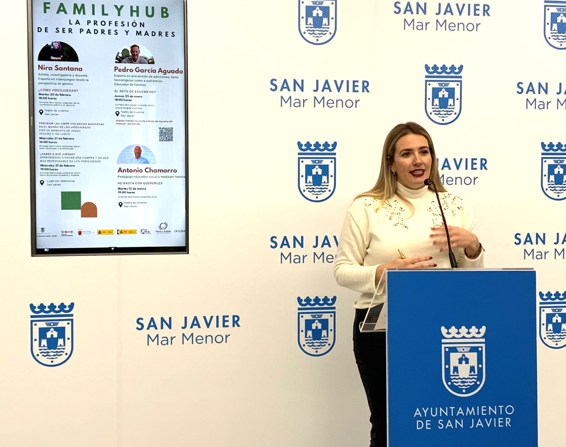 Family Hub ofrece una segunda vertiente enfocada a niños y adolescentes con una serie de ponencias y sesiones formativas sobre temas relacionados con la “profesión de ser madres y padres”. El ciclo lo abrirá el próximo jueves 25 de enero, Pedro García Aguado conocido por el programa “Hermano Mayor” y experto en prevención de adicciones , tanto tecnológicas como a sustancias y Educador de familias, que hablará sobre “El reto de educar hoy”. La cita será el 25 de enero en el teatro de invierno a las 18:00h con entrada libre hasta completar aforo aunque se precisará inscripción previa a través del siguiente enlace https://www.afalevante.ong/ayuntamiento-sanjavier-... . Nira Santana, artista, investigadora y docente. Experta en videojuegos desde la perspectiva de género, ofrecerá tres sesiones en el mes de febrero. “¿Cómo videojuegan?” será la primera el 20 de febrero a las 18:00h en el teatro de invierno. El 21 de febrero hablará sobre la prevención de las ciber violencias machistas en el mundo de los videojuegos, a las 16:00h en el teatro de invierno y a las 19:00h sobre una compra y un uso más responsable de los videojuegos. El ciclo finalizará el 12 de marzo con la visita de Antonio Chamorro, pedagogo, educador social y mediador familiar que explicará por qué “No basta con quererles”, a las 19:00h en el teatro de invierno. Todas las ponencias son gratuitas hasta completar aforo.